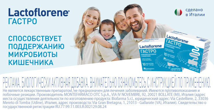 При выборе пробиотика можно обратить внимание на пробиотический комплекс из Италии – Lactoflorene® ГАСТРО. Формула продукта содержит высокую концентрацию (10 миллиардов) живых бактерий с доказанной эффективностью[1]: